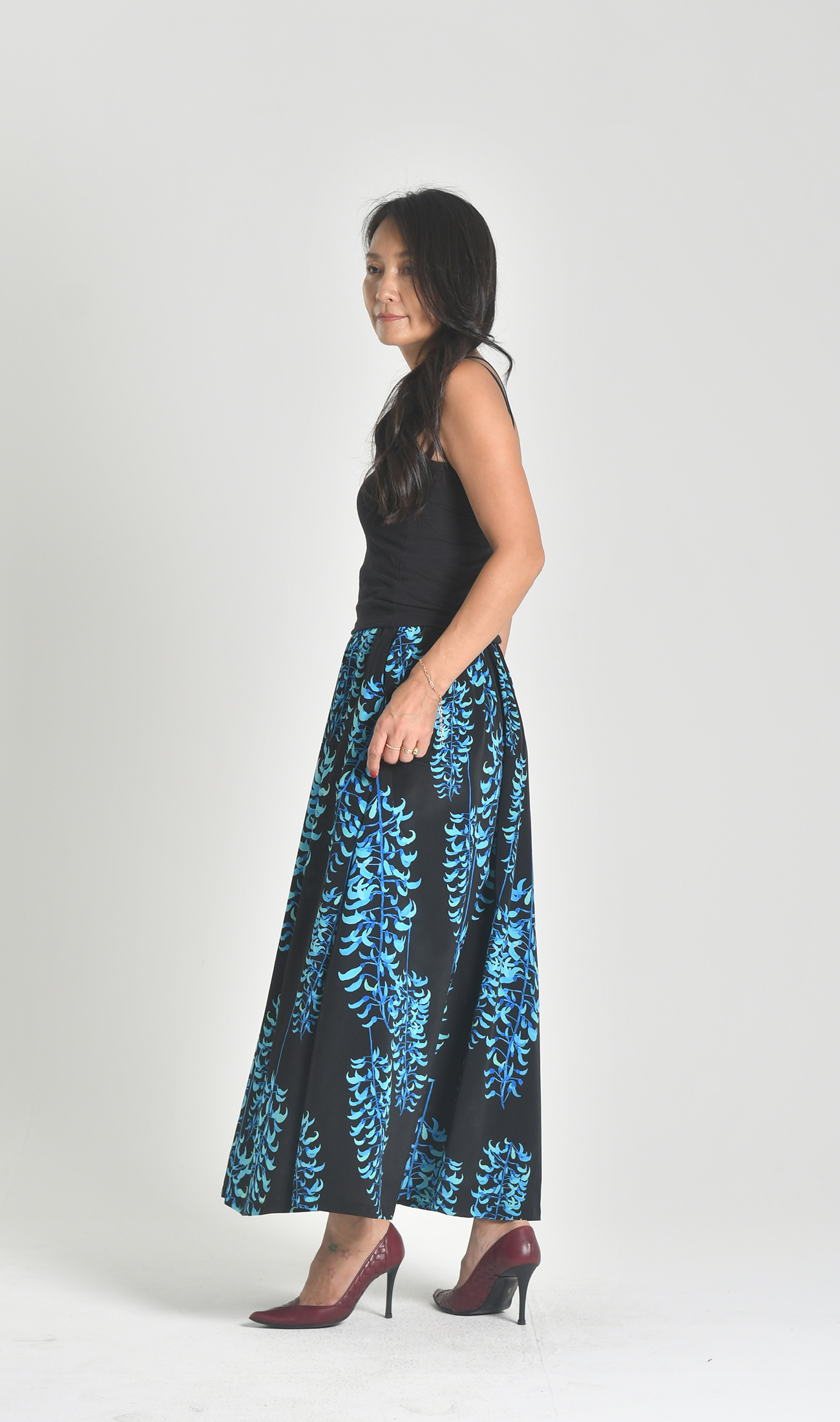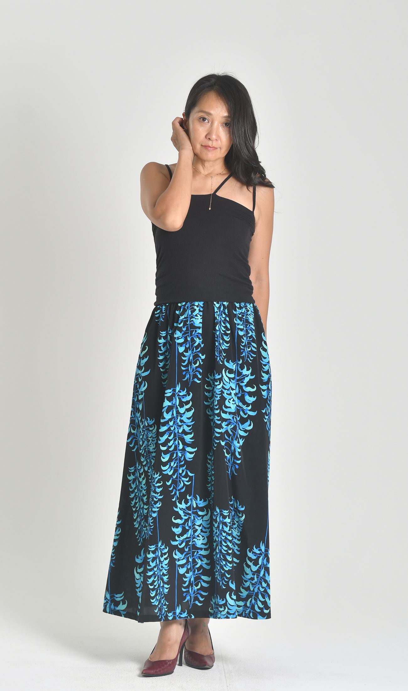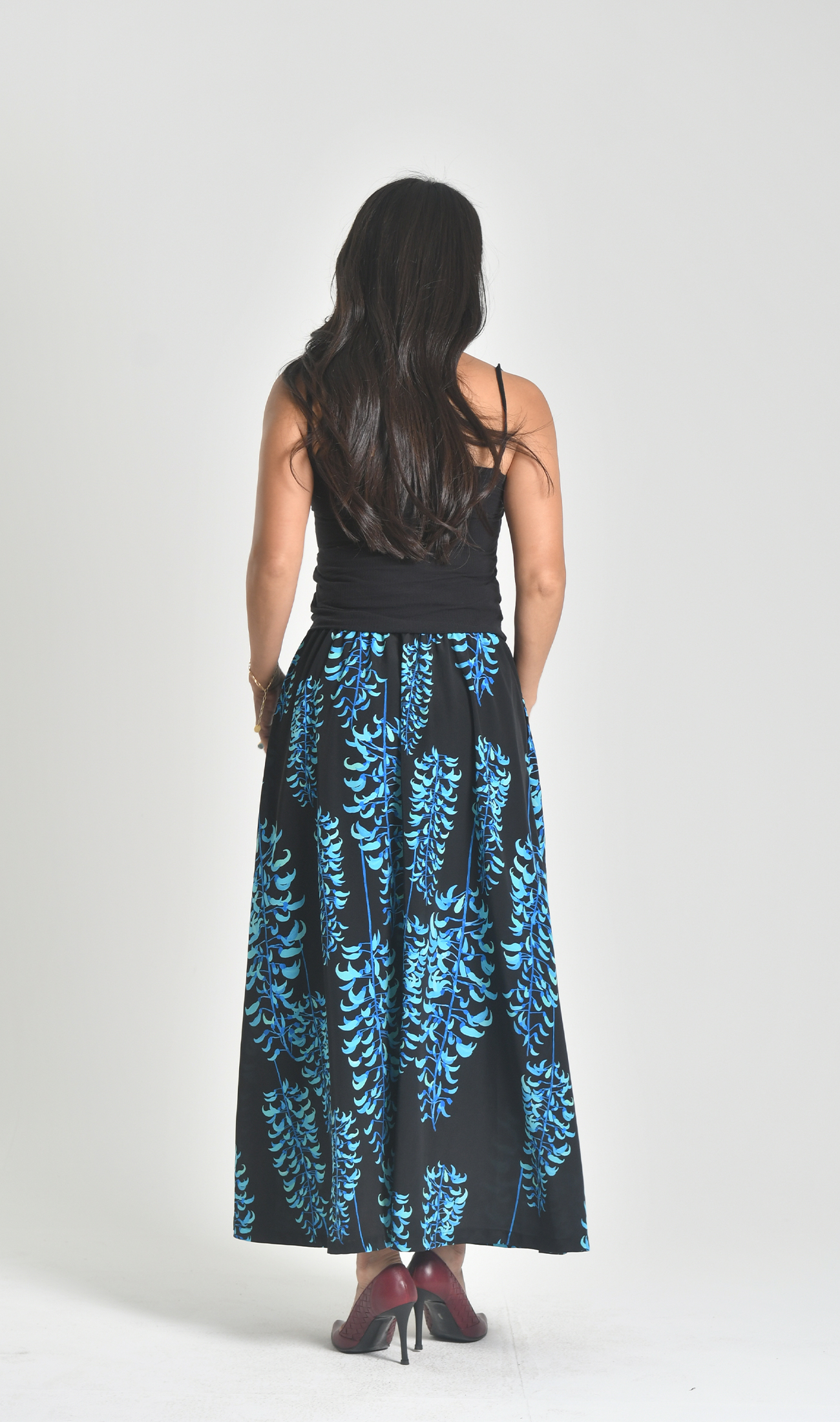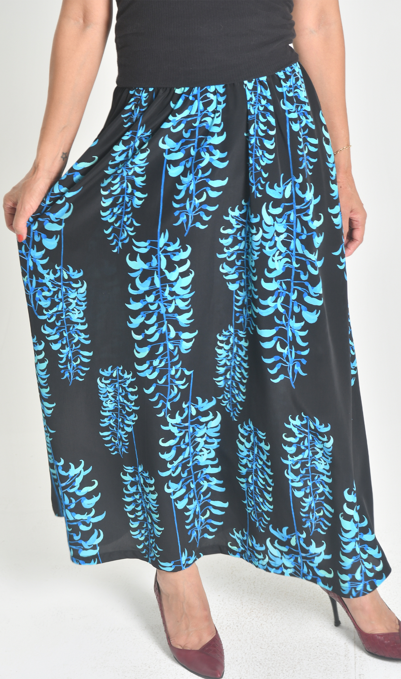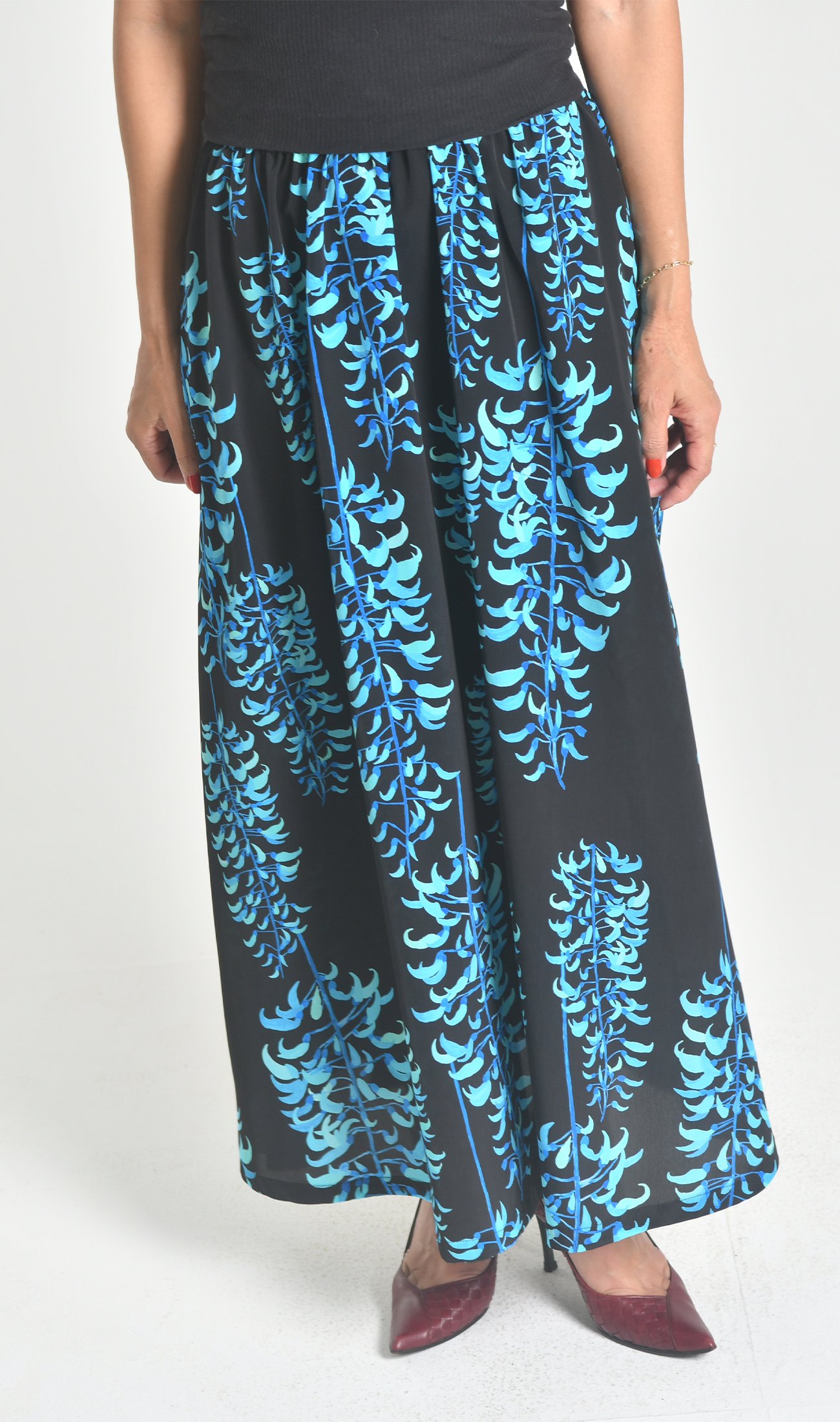 ハイウエストでウエストラインが美しいマキシスカート