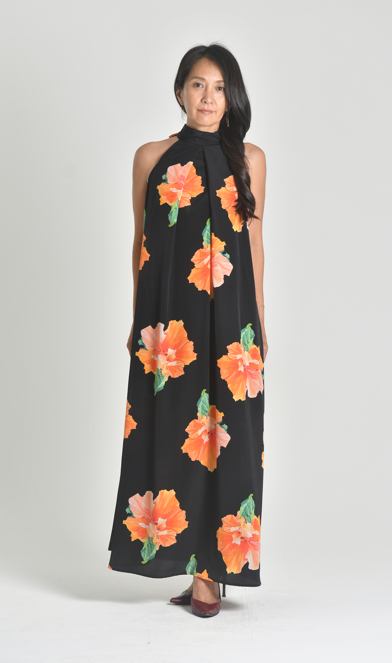 ホルターネックの流れるようなドレスラインがフォーマルなシーンで活躍します。