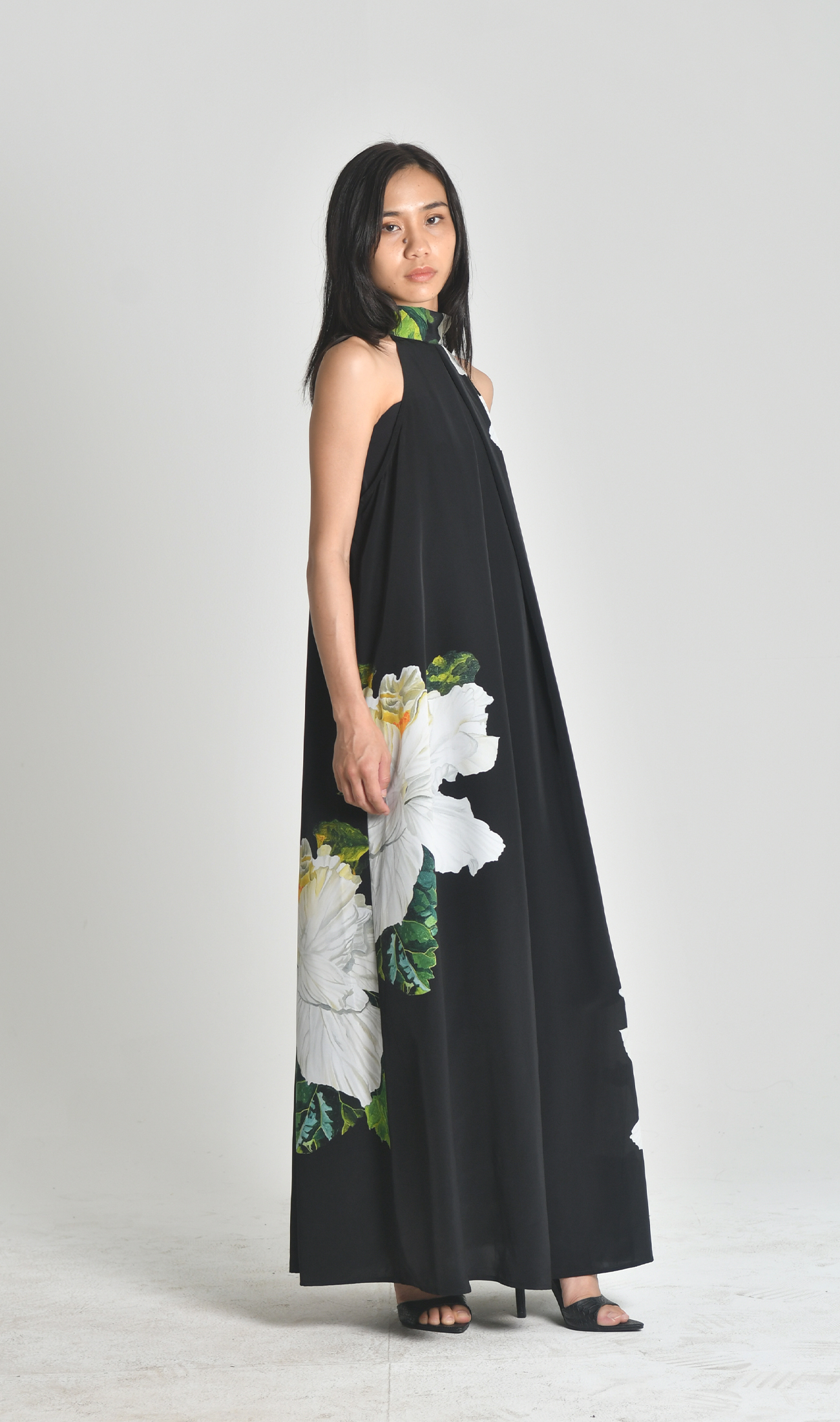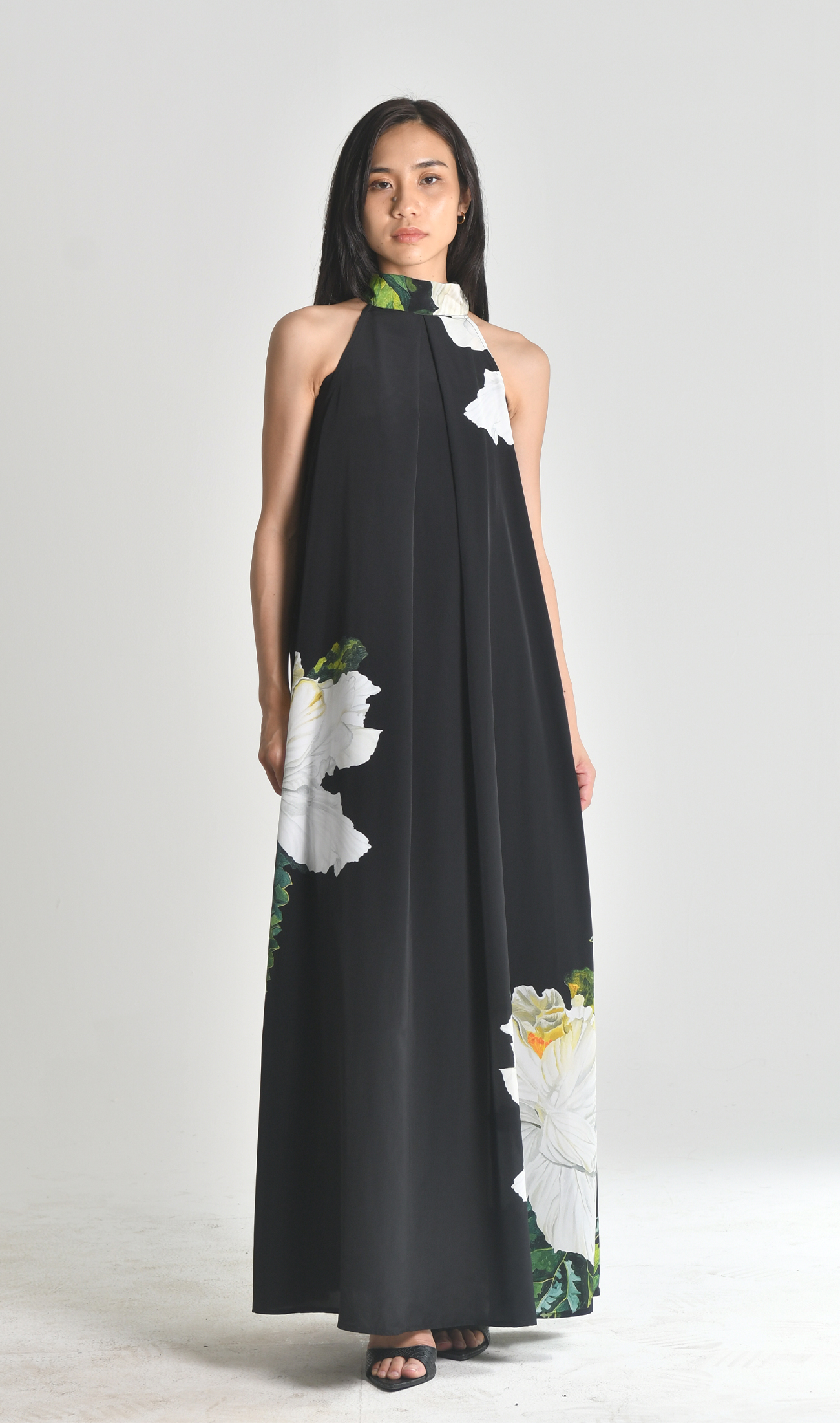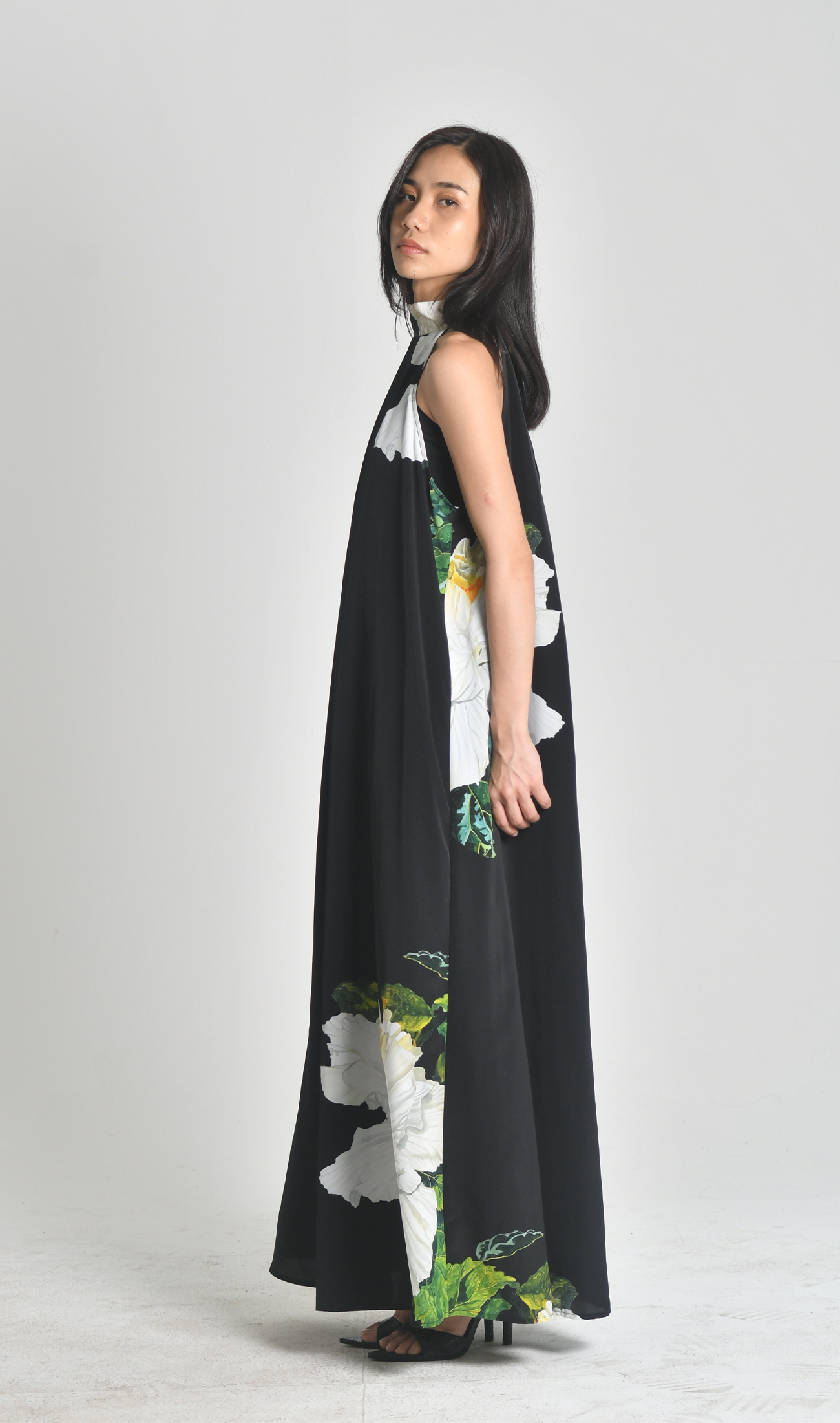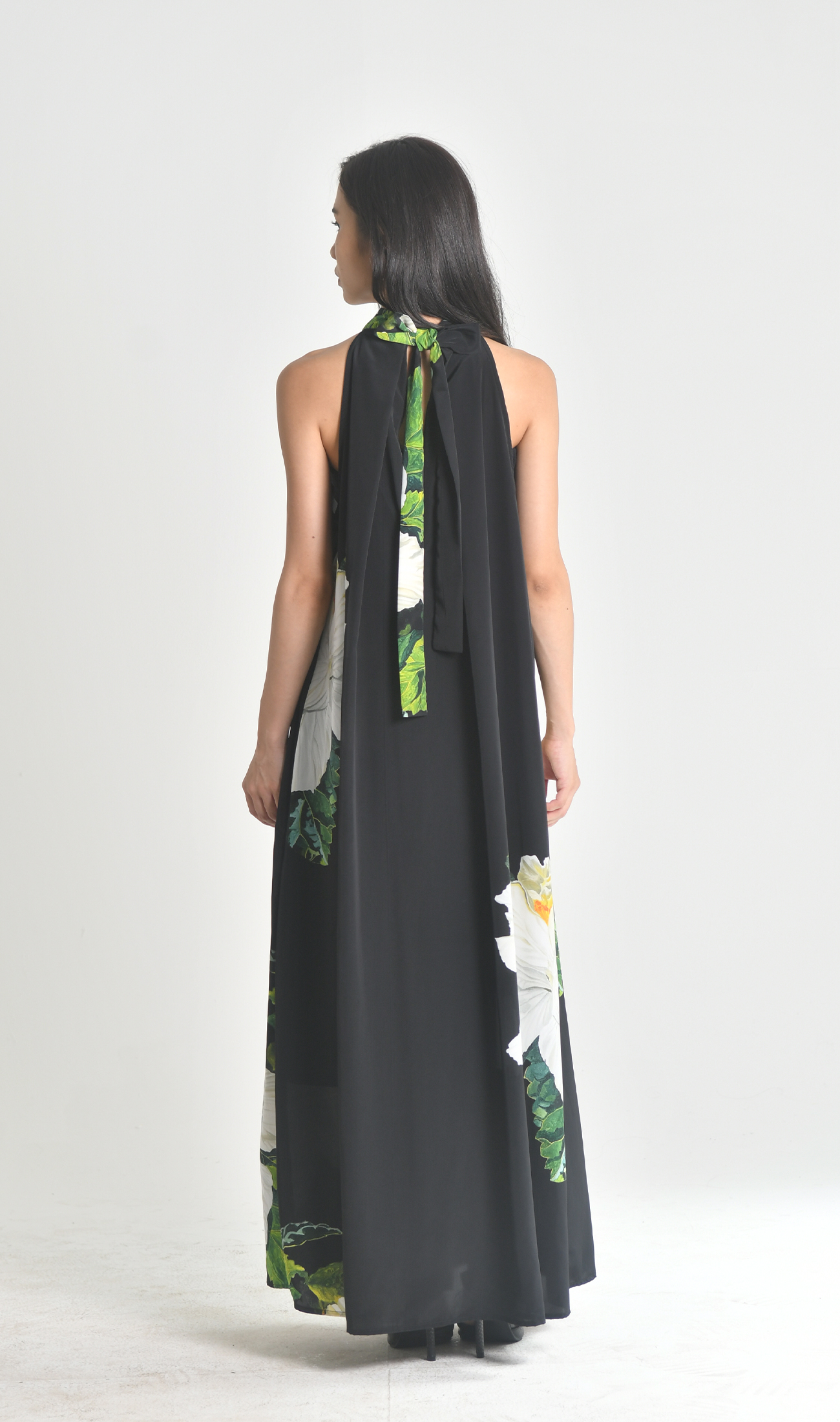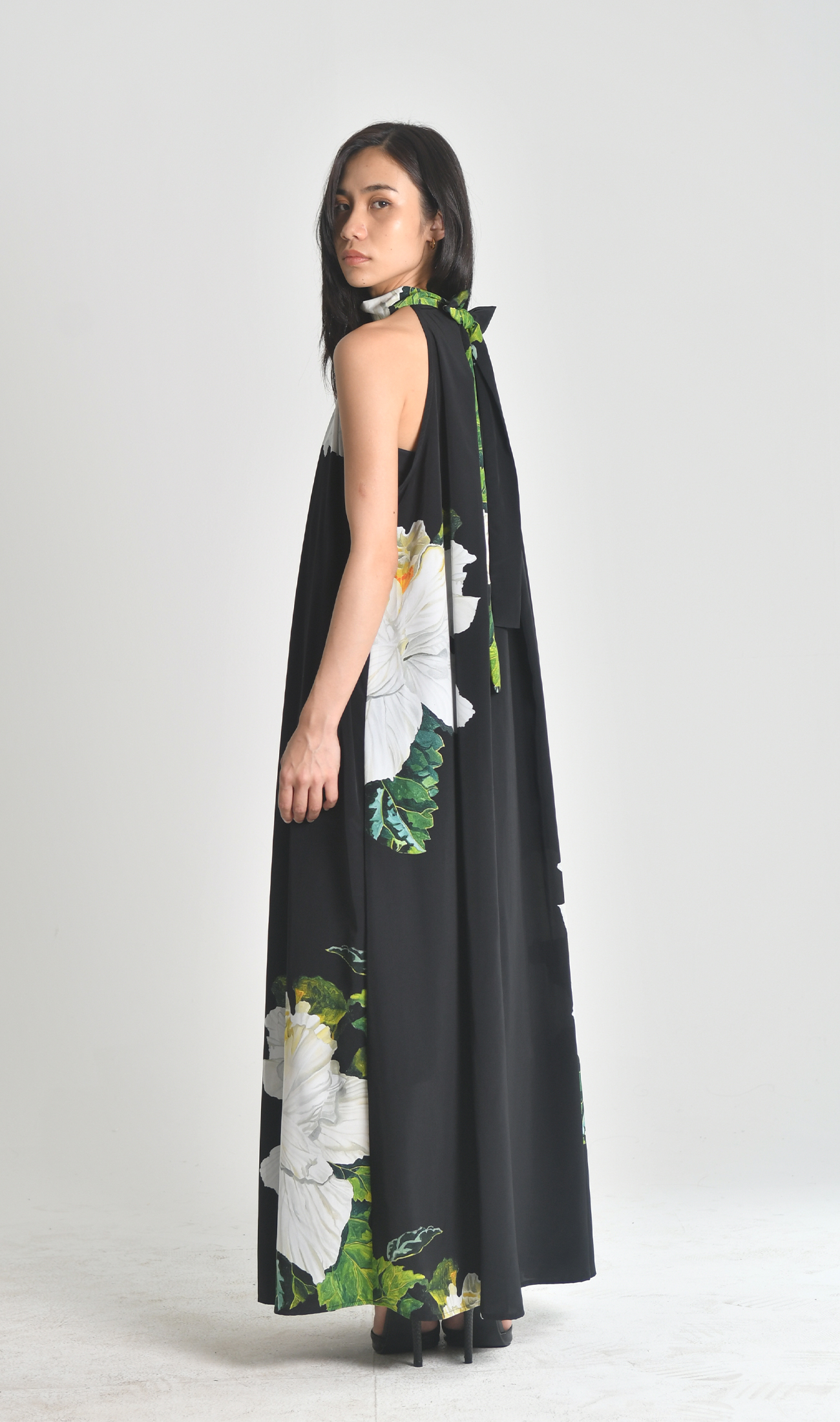 ホルターネックの流れるようなドレスラインがフォーマルなシーンで活躍します。