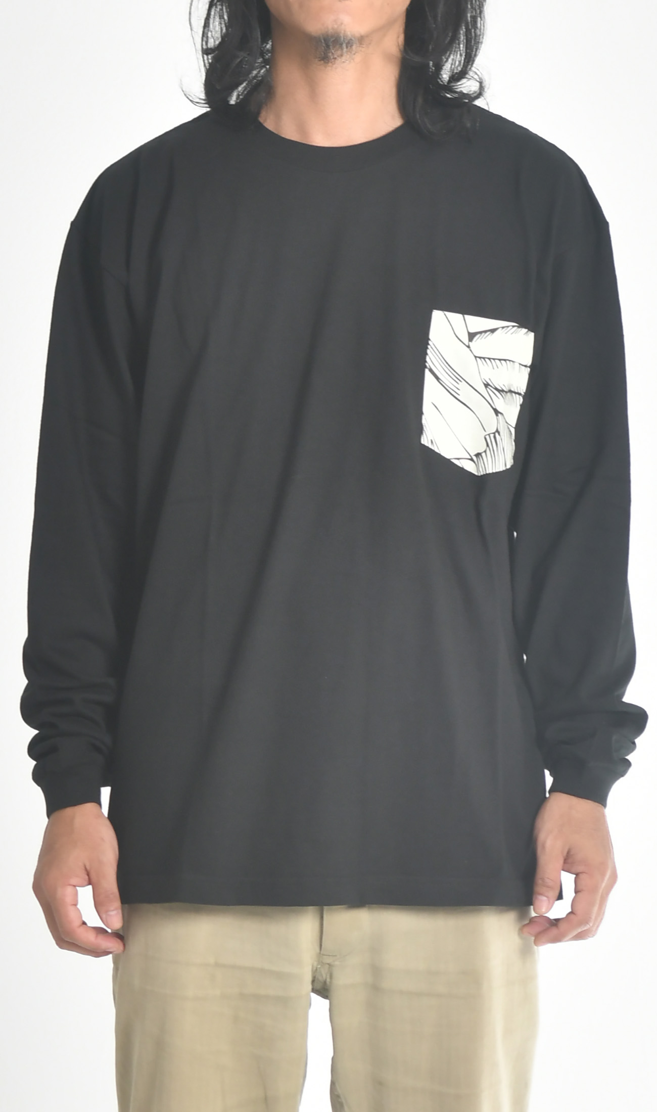ポケットロングスリーブTシャツ(ブラック) | Abstract