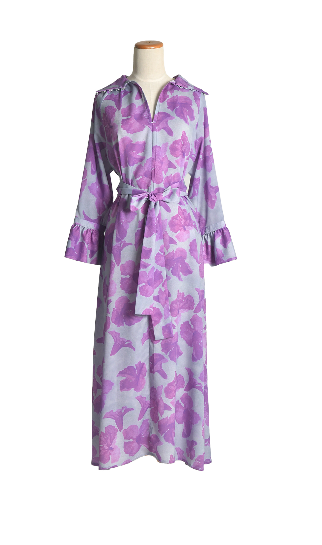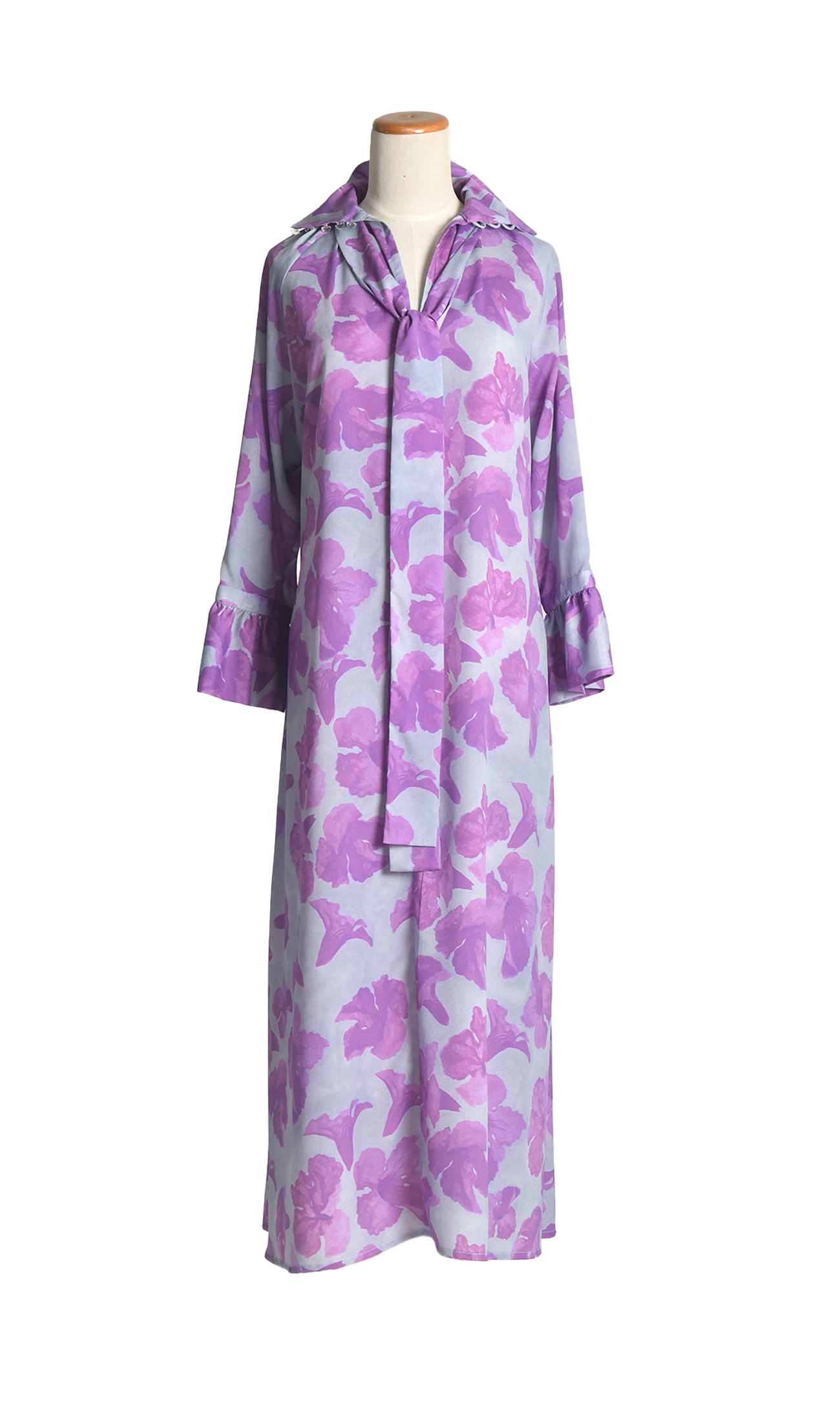 シフォン素材の軽やかさが相まり全体的に柔らかな上品な印象を与えるドレスです。