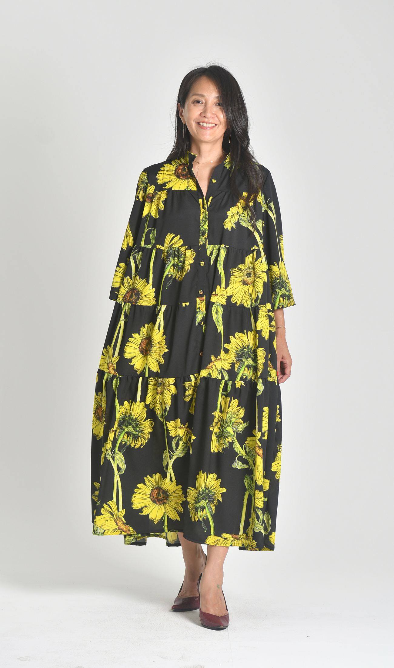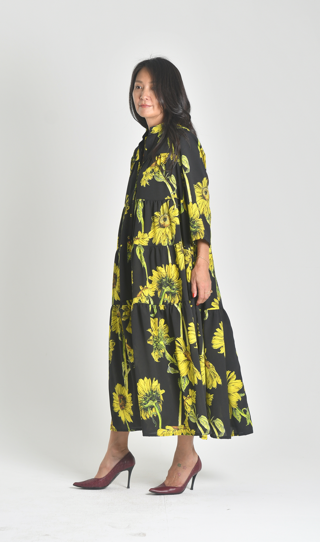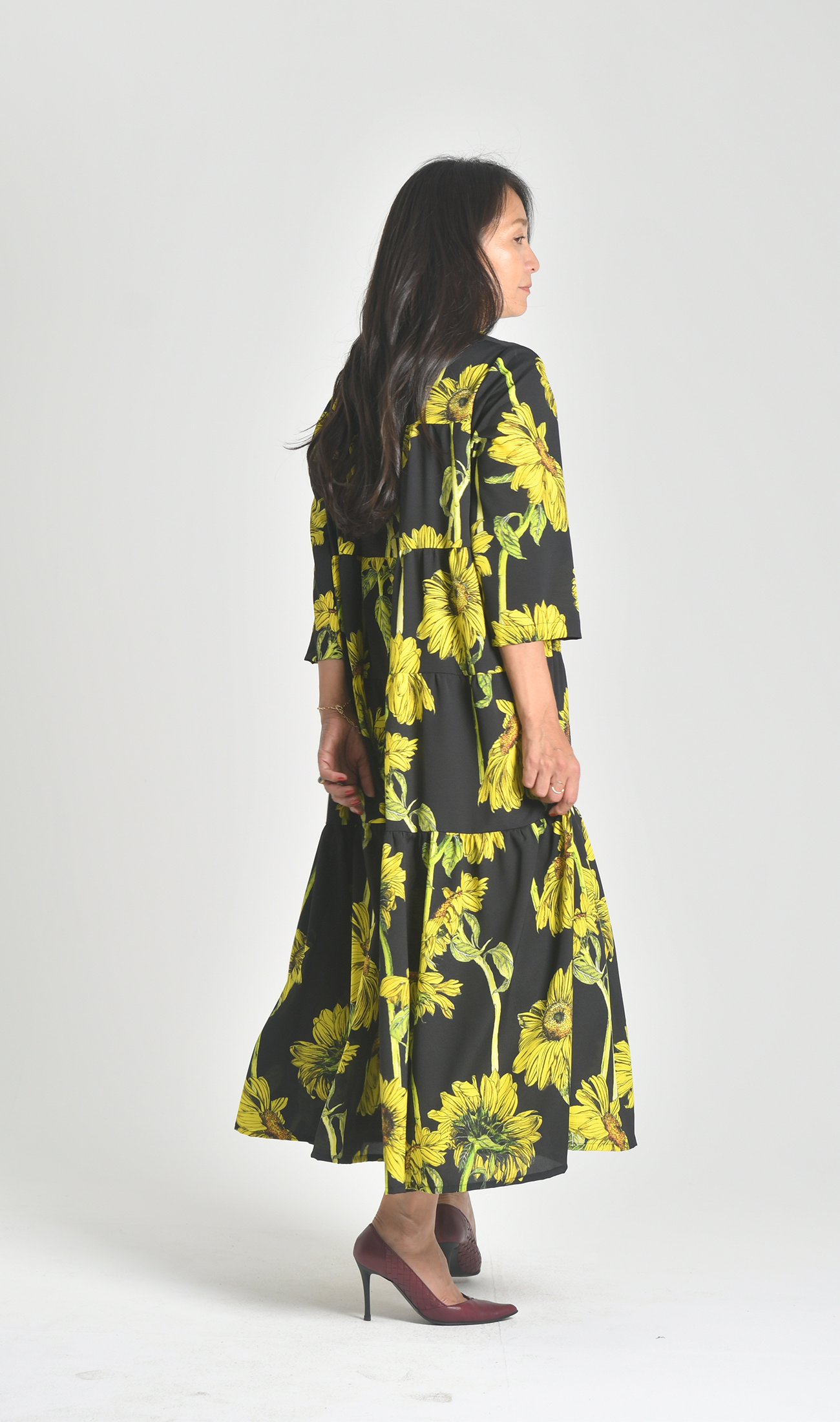 ふんわり可愛らしいシルエットでもちょっぴりクールな印象もある大人可愛いワンピースです。